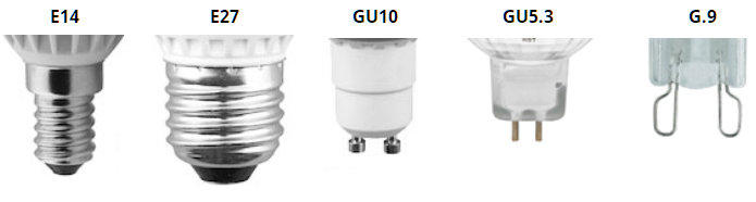 el tipo de casquillo que requiere el portalámparas, los tipos de