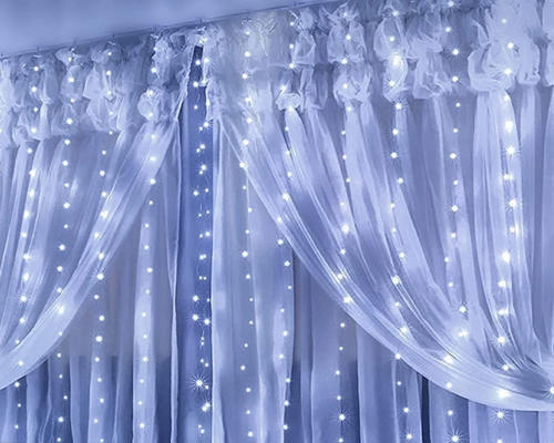 Cortina de dos colores, blanco cálido y blanco frío. Tiene 300